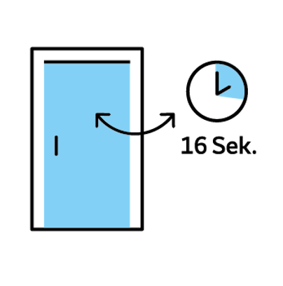 Schließt und öffnet mit 16 Sek. Verzögerung
