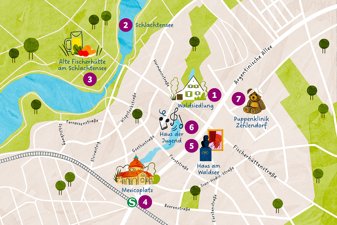 Nestled amidst tall pine trees, secluded from the hustle and bustle of the big city, lies the Krumme Lanke forest settlement. One might think it a somewhat dated, yet very idyllic residential area. However, its history carries a heavy weight: Between 1937 and 1939, a total of 600 housing units were built here for SS members and their families. Living here was a privilege for those who played a significant role in the death and destruction of World War II. Following the principle of "blood and soil," the SS wanted to settle "valuable SS families" here and architecturally realize the ideology of an elite community. The different housing units, varying in furnishings and size, clearly reflected the hierarchy of the residents' ranks. After the end of the war, the apartments, houses, and villas were given priority over refugees and resistance fighters. Since 1992, the Krumme Lanke forest settlement has been a listed building.