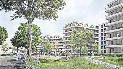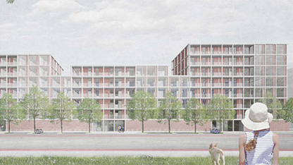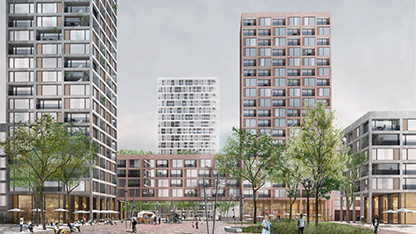 In zentraler Lage von Friedrichsfelde, beim U-Bahnhof Friedrichsfelde und umgeben von viel Grün, plant die HOWOGE ein Neubau-Ensemble mit Wohnungen und Gewerbe.