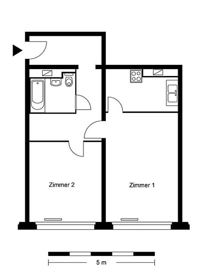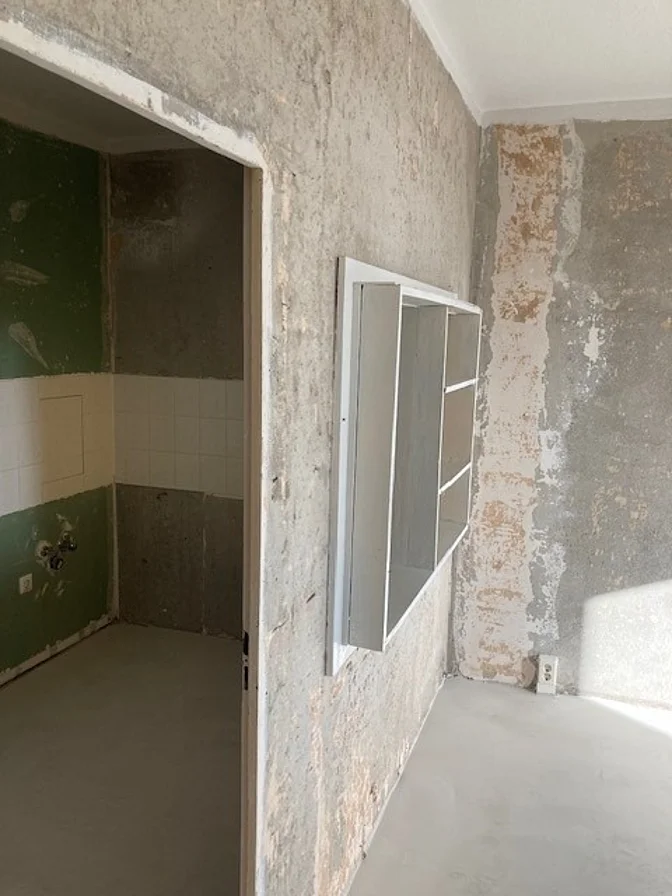 unrenovierte 2-Zimmer-Wohnung mit Durchreiche in der Küche