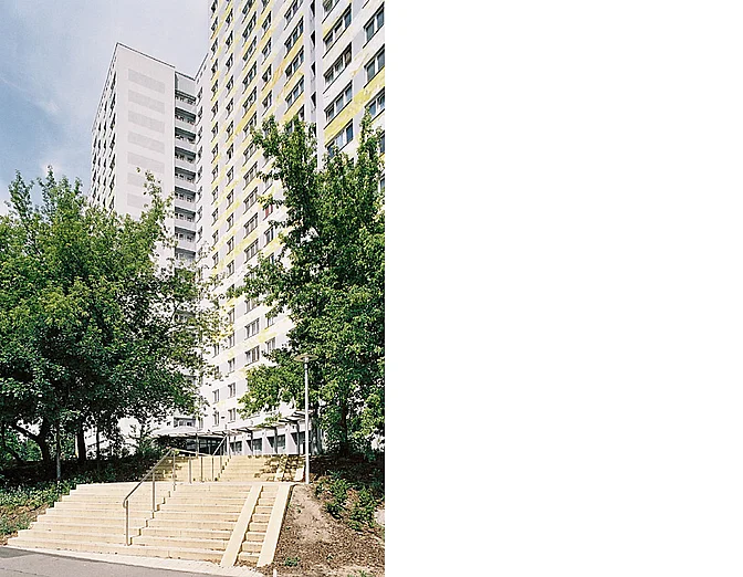 Das Doppelhochhaus wurde saniert. Im Jahr 2025 wurden die Fenster erneuert, es erfolgte die Installation von Photovoltaikanlagen an der Fassade und dem Dach. Die Aufzüge wurden modernisiert. Aktuell finden noch kleine Restarbeiten in den allgemeinen Bereichen des Wohnhauses und die Erneuerung der Außenanlagen statt. Im Haus und vor dem Haus sind ausreichend Fahrradstellplätze zur Verfügung.