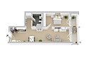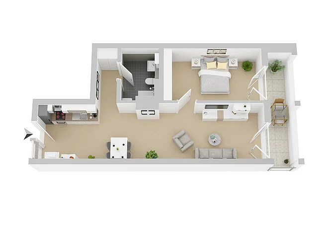 Die Wohnungen werden unmöbliert vermietet, die Visualisierungen sollen der Veranschaulichung dienen (Fenstergrößen und tatsächliche Ausstattung können abweichen). Im Grundriss wird das Mobiliar exemplarisch dargestellt. Flächenangaben können abweichen.