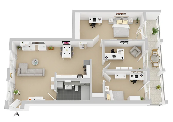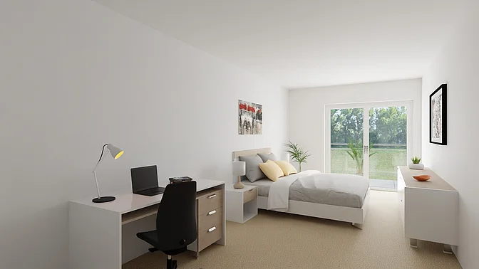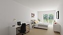 Die Wohnungen werden unmöbliert vermietet, die Visualisierungen sollen der Veranschaulichung dienen (Fenstergrößen und tatsächliche Ausstattung können abweichen).