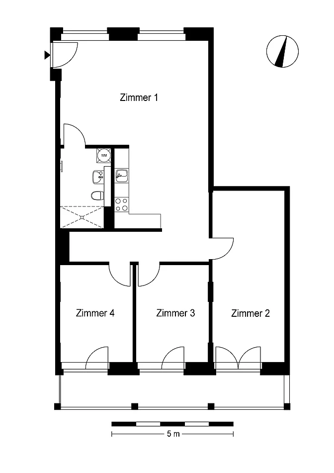 Hier entstehen moderne 4-Zimmer-Apartments, die sich durch ihre großzügigen Grundrisse von ca. 100 bis 105 Quadratmetern auszeichnen. Der weitläufige Wohn- und Essbereich mit offener Küche bildet den zentralen Treffpunkt der Wohnung. Die weiteren Zimmer sind gleichmäßig geschnitten und bieten ausreichend Platz für Schlaf-, Kinder- oder Arbeitszimmer. Dank der klaren Raumstruktur eignen sich die Wohnungen auch ideal für Wohngemeinschaften. Über den Balkon, der an mehrere Zimmer angrenzt, entsteht zusätzlicher Freiraum. Durch große Fensterflächen sind alle Räume hell und freundlich gestaltet.
