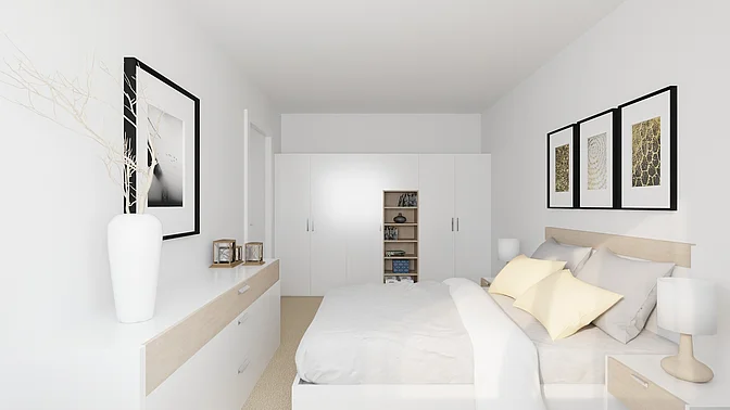 Die Wohnungen werden unmöbliert vermietet, die Visualisierungen sollen der Veranschaulichung dienen (Fenstergrößen und tatsächliche Ausstattung können abweichen).