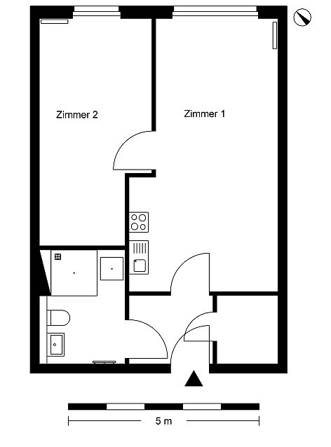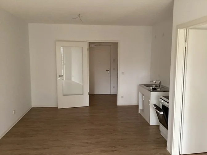 Zur WohnungGroßzügig geschnittene 2-Zimmerwohnung sucht ab sofort neue Mieter:innen. Die Wohnung verfügt über eine moderne Wohnküche, Schlafzimmer, Flur, Abstellraum und ein modernes Duschbad mit einer ebenerdigen Dusche. Im Grundriss wird das Mobiliar exemplarisch dargestellt. Flächenangaben können abweichen.