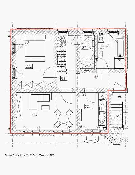 Zur WohnungIm Grundriss wird das Mobiliar exemplarisch dargestellt. Flächenangaben können abweichen.