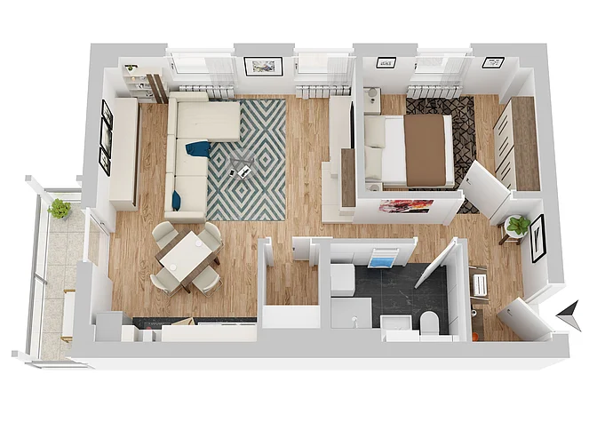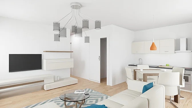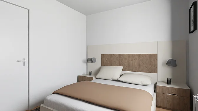 Die Wohnungen werden unmöbliert vermietet, die Visualisierungen sollen der Veranschaulichung dienen (Fenstergrößen und tatsächliche Ausstattung können abweichen).