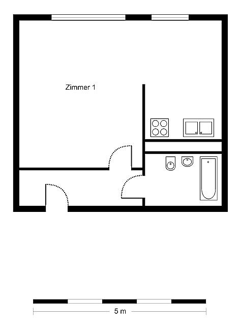 innenliegendes gefliestes Wannenbad, helle Wohnung mit großen Fenstern, ohne Balkon