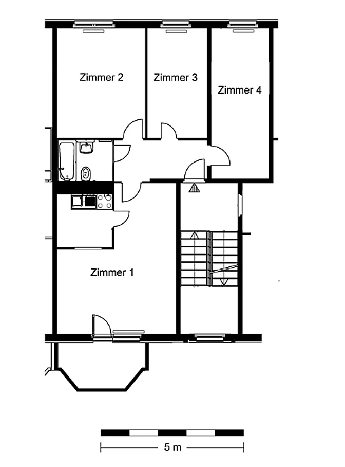 Im Grundriss wird das Mobiliar exemplarisch dargestellt. Flächenangaben können abweichen. Großzügige 4-Raum Wohnung. Die Wände verfügen über keine Tapeten. Die hier notwendigen Tapezier- und Malerarbeiten übernimmt unser neuer Mieter.
