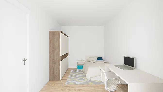 Bitte beachten Sie, dass es sich vorerst nur um eine Beispielwohnung handelt. Die weiteren, real verfügbaren Wohnungen können nach Besichtigung der Musterwohnung digital in der App eingesehen werden. Vor Ort können Sie sich in einer Musterwohnung einen Eindruck von der Ausstattung, der Qualität und der Beschaffenheit des gesamten Objektes verschaffen. In den Visualisierungen wird das Mobiliar exemplarisch dargestellt und gibt keinen Rückschluss auf die Ausstattung der Wohnungen.