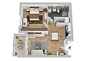 Im Grundriss wird das Mobiliar exemplarisch dargestellt. Flächenangaben können abweichen.