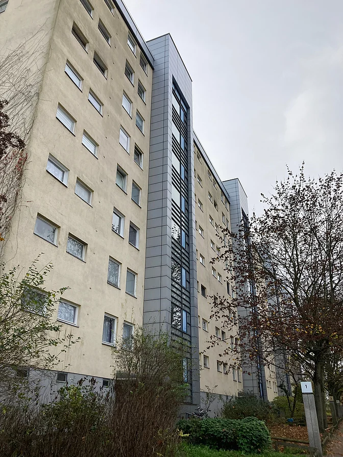 Das Gebäude wurde in den 1970er Jahren erbaut. Die Wohnung befindet sich im 2. OG. Ein Aufzug ist vorhanden. Die Wohnung verfügt über einen Balkon. Die Wohnung wird im unrenovierten Zustand vermietet, kein Bodenbelag vorhanden.